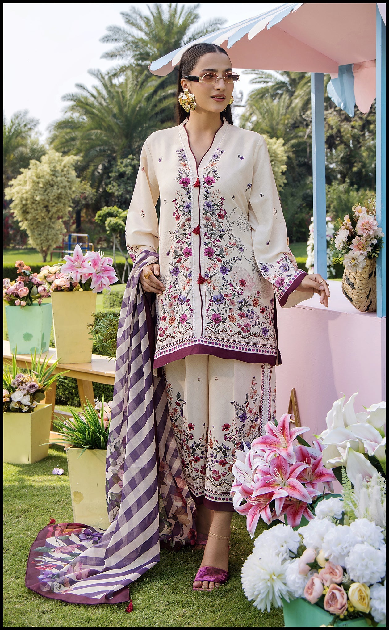 Embrace elegance in our delicately designed ensemble, featuring a graceful PP lawn silk shirt, a beautifully printed dupatta, and matching printed PP lawn silk trousers for a refined and sophisticated look.